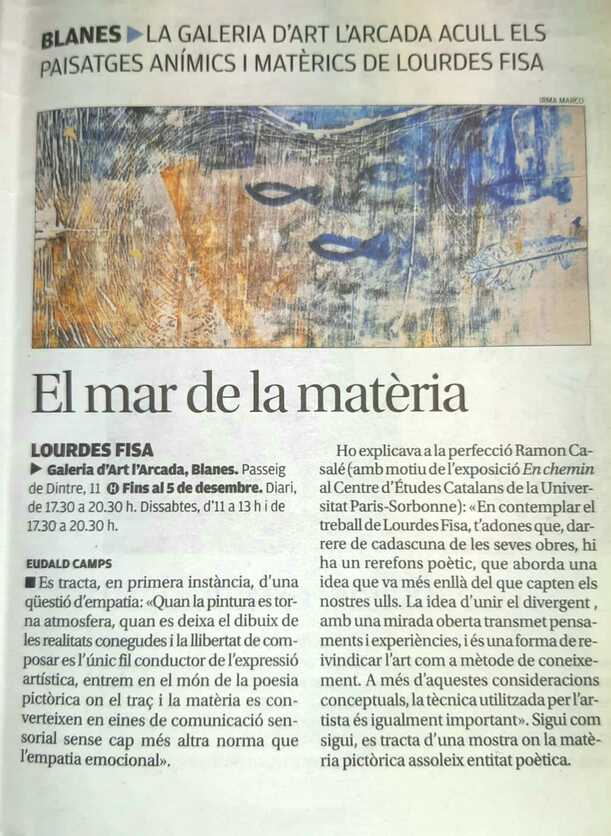 Amb aquesta exposició la galeria es torna punt de trobada de tots els qui agrada la pintura com exaltació de bellesa a la natura. Mil pinzellades que es transformen en llum donen